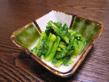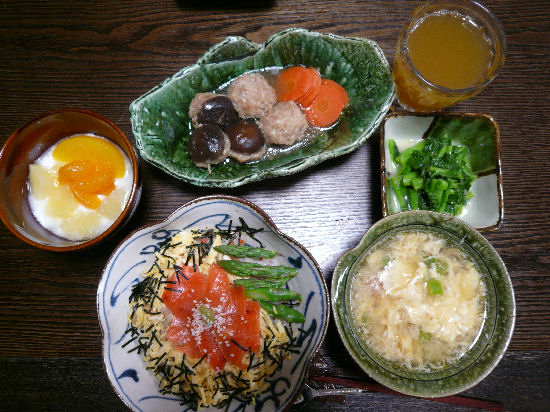 × [PR]上記の広告は3ヶ月以上新規記事投稿のないブログに表示されています。新しい記事を書く事で広告が消えます。 ***ささみと青梗菜の塩中華(H20.2/26料理)*** とりささみの筋を取り除き適当な大きさに切りしょうがのすりおろしと酒、しょうゆ少々をからめ少しおきそれに片栗粉をつけ軽く油で揚げておく。 大きめに切った青梗菜と短冊切りした人参をフライパンで炒め先程のささみも入れる。そこへ酒、鶏がらスープを入れ少々の塩で味を整えさっと煮たら、水とき片栗でとろみをつけ、最後に鍋肌 ごま油を少し回し入れ出来上がりです。 *我が家は塩に関してはミネラル分の量が世界一多いとギネスに認められた ぬちマース という沖縄の綺麗な海より摂れた塩を使っています。ミネラルが多い分普通の塩より旨みがあり血圧にも良いらしいのです。 ****************************************** ***まぐろのソティー(H20.2/27料理)*** 安いまぐろが手に入ったのでソティーにしました。 マグロの切り身にすりおろしたにんにくをすりつけ黒コショウと塩少々をふっておき小麦粉をはたきフライパンでオリーブ油でこんがり焼く。 同じフライパンにまいたけも入れ焼き最後にダシ醤油をおとし魚ときのこに香ばしい味をつける。 グリーンアスパラはさっと湯がき最後お湯に少々の油をおとし旨みを閉じ込めさっとお湯からあげる。 *我が家では炒め油にはオリーブ油もしくはアーモンド油などを使います。中華や香り付けの欲しいときはごま油を使います。基本的にはあまり揚げ物などはしませんが、揚げることが必要な時はこめ油や天然に近い大豆油などを使用します。食用油は加工が加わり結構、私達の体に害があるかもしれないものを知らないうちに摂らされていることがあるので気をつけたいと思います。* ***この皿は*** 粉引き掛けわけ角皿(中) と言います。 本当に盛り付けるものを活かす力のある皿です。大好きな皿です。 PR ***水菜と油揚げの煮浸し(H20.2/25料理)*** 熱湯をかけて油抜きをして適当に切った油揚げと水菜を煮浸しにしました。 少し一味をふり最後に白ごまを振り掛けました。 *************************************** ***いかと大根の煮物(H20.2/26料理)*** 大根を四つ割りにしそれを乱切りにしたものといかを茹でスライスした物を薄くぶつ切りしたショウガをなべに油を入れ炒め香りをだして大根を透きとおるぐらいまで炒めそうなったらいかを入れ砂糖、ダシ、醤油、みりんなどで煮汁を作り圧力鍋で煮る。最後に青い物をさっと一緒に煮てできあがり! ***この器は*** 呉須赤絵花中鉢 と言います。いろいろ使える鉢です。風情もあり大好きな器です。 (上の写真をクリックすると別ウインドウで大きく表示されます!) 昨日は桃の節句=ひな祭り、ひな祭りごはんらしきものを作ってみました。 いつもはこのプログは古いものから書いていこうと思いますが、今日は特別、昨夜のひな祭りメニューを公開!です。といっても大したメニューではありませんが・・・・。 **************************************** ***ちらし寿司*** お寿司の部分は市販の混ぜものと白ごまを炊いたごはんに混ぜ、錦糸卵を作り、グリーンアスパラを湯がいたもの、スモークサーモンをのせ、わさびをのせ白ごまをふります。 ***この器は*** 呉須赤絵花中鉢 といいます。風情のある器です。 ***************************************** ***しいたけのそぼろつくね詰めの煮物*** とりミンチ肉にしょうがのすったもの、酒、だししょうゆなどをなじませて片栗粉を混ぜこみしいたけの笠の中に片栗粉を縫っておき作っておいたとりのつくねの素をこんもりと入れるそれを作っておいたダシ汁で煮る。 普通にガスコンロで煮ると丸い形のせいでひっくり返ったり、つくね部分が鍋にこびりついたりするので私はレンジ用の鍋でレンジで煮ました。色味が足りないと思い急遽人参をチンして添えました。 ***この器は*** 織部三つ足楕円鉢 といいます。 **************************************** ***トマトと卵のスープ*** トマトをくし切りしたものを鍋に油を引きにんにくを炒め香りをだしたところに炒れさっと炒めます。 そしてそこに水を入れスープの素を入れ黒コショウ、塩、酒などで味を整えます。 煮立ってきたら卵をといたものを流しいれ仕上げに青い物をちらします。トマトの酸っぱさが美味しい一品です。 ***この器は*** 織部お茶漬け碗 といいます。いろいろ使えて重宝してます。 **************************************** ***菜花のからし酢あえ*** ひな祭り=菜の花というイメージが私の頭の中にあって菜花は欠かせませんでした。菜花が春を思わせるのでしょうか?・・・。菜花を茹でからし酢を作りあえました。 ***この器は*** 角小鉢 と呼んでいます。 レトロな雰囲気がすてきです。 **************************************** ***フルーツヨーグルト*** この器ははじめて登場ですが、ごはん茶碗や汁碗、デザートの器として活躍してくれそうな器です。 まだ、呼び名は決まっていません。 ***肉じゃが*** 我が家の畑で収穫