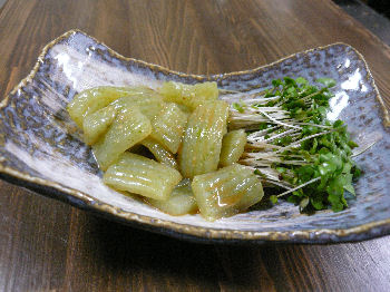 × [PR]上記の広告は3ヶ月以上新規記事投稿のないブログに表示されています。新しい記事を書く事で広告が消えます。 ***豚肉とレタスのスープ(H20.2/21料理)*** 冷蔵庫にレタスがたくさん余っていたのでこれを作ろう!と思いました。ずーっと昔に今日の料理の男の料理というのを見て、簡単で美味しいということとレタスを汁物にいれるという意外性に感動して作ったらこれが美味しかったのでそれから作るようになりました。 材料と作り方はいたって簡単です。お湯を沸かしそこに豚ロースのスライスをそのまま投入そして、お酒少し入れます。あったらでいいのですが、しいたけまたは干ししいたけの戻したものを入れあとは自分好みの味に汁の味を整え(私は昆布だしとダシ醤油とごま油)。そして、アクが浮いてきたらアク取りとして食べる直前に洗っておいたレタスを適当な大きさにちぎってスープに入れ出来上がりです。レタスのシャキシャキ感を少し残した方が美味しいです。 **************************************** ***豆腐のすき焼き風(H20.2/22料理)*** 実は手抜きで、豆腐があったのでどうしよう??と思っていたら頭が回らなくてスーパーで市販の豆腐のすき焼きというのが目に入りはじめて使ってみました。味はとても甘めでした。今度は自分で作ってみようと思います。最期に菜花が残っていたので茹でて乗せてみました。 (この上の写真をクリックすると別ウインドウで大きく表示されます!) ***この器について*** この器は 呉須赤絵花中鉢 と言います。 これはほんとうは赤い絵の無いものを注文していたのですが、無く今製作中!ということで、お店の方が薦めてくださったものです。花のような優雅な形が気にいっています。また、汁物に煮物にといろいろ使えそうなところがいいです。 PR ***大根の皮のきんぴら(H20,2/20料理)*** この頃は大根を使うことが多くて皮がたまったので作りました。この前より多く出来てしまったので、この皿に盛りました。 **************************************** ***ピーマンのみそ炒め(H20,2/22料理)*** *赤ピーマン(パプリカではない)が手に入った。 赤ピーマンとは緑のピーマンをながく枝でならしておくと赤くなるそのピーマンである。 このピーマンはとても栄養価が高くわざわざ、このように熟させたものをカゴメの野菜ジュースに使ったりするらしく、私達も昨年、畑でピーマンをほっておいて赤くしたことがあった。* 普通の緑ピーマンと赤ピーマンを大きめに千切りし油(出来たら ごま油など)で炒め、火を止め 味噌をみりん をフライパンにおきのばしピーマンにからめるそして少し炒める最後に だしの粉(かつお粉またはいりこ粉) をからめる。 ***この皿について*** とても気にいっている皿です。道の駅にこんなに良い皿があったなんてとてもラッキーでした。しかし、2枚しかないのでわらないようにしなければ・・・・。自信がないなー。今までも結構大切な器を割ってしまったからなー。 |